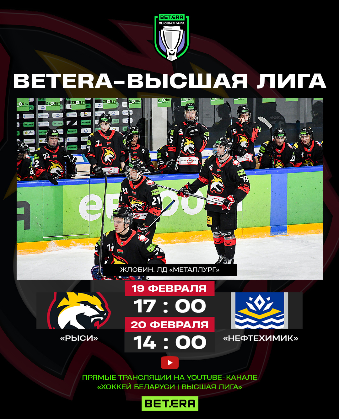 Betera-Высшая лига: 19 и 20 февраля «Рыси» принимают «Нефтехимик», матчи пройдут на арене в Жлобине