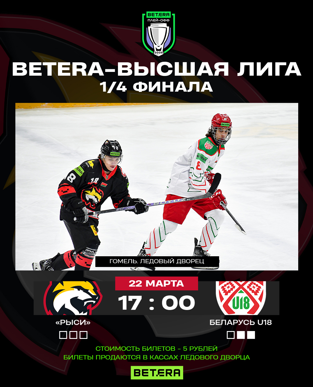Betera-Высшая лига. Плей-офф: 22 марта «Рыси» проведут домашний матч в серии против юниорской сборной Беларуси