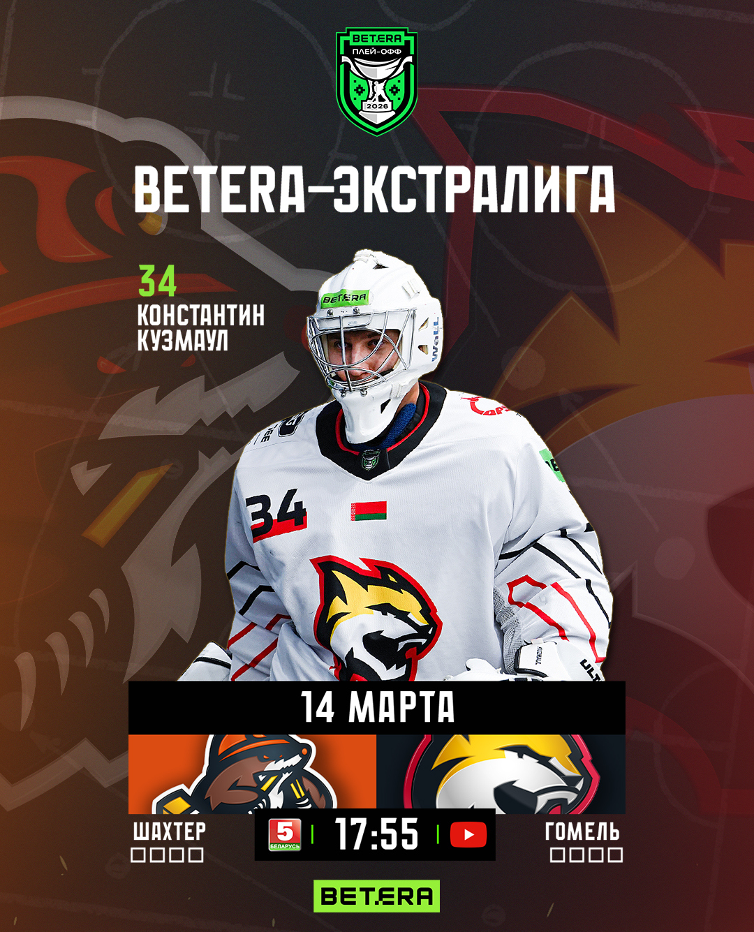 Игра стартует в 17:55, прямую трансляцию смотрите на телеканале «Беларусь 5» и YouTube-канале «Хоккей Беларуси | Экстралига».