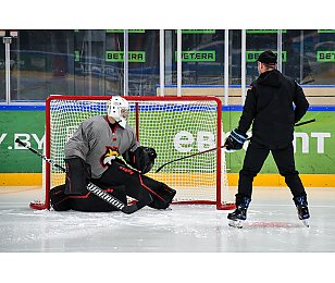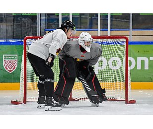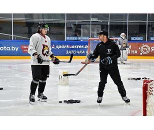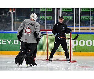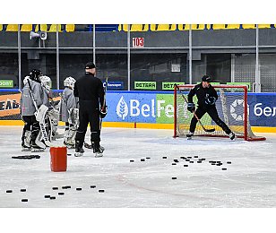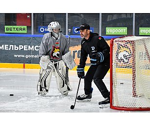 После автограф-сессии, проходившей в фойе, тренер вратарей минского «Динамо» Степан Горячевских отправился на лед нашей арены и провел тренировку для вратарей гомельской СДЮШОР, принимающих участие в летних сборах. После тренировки мы поговорили со Степаном Михайловичем о кэмпе: