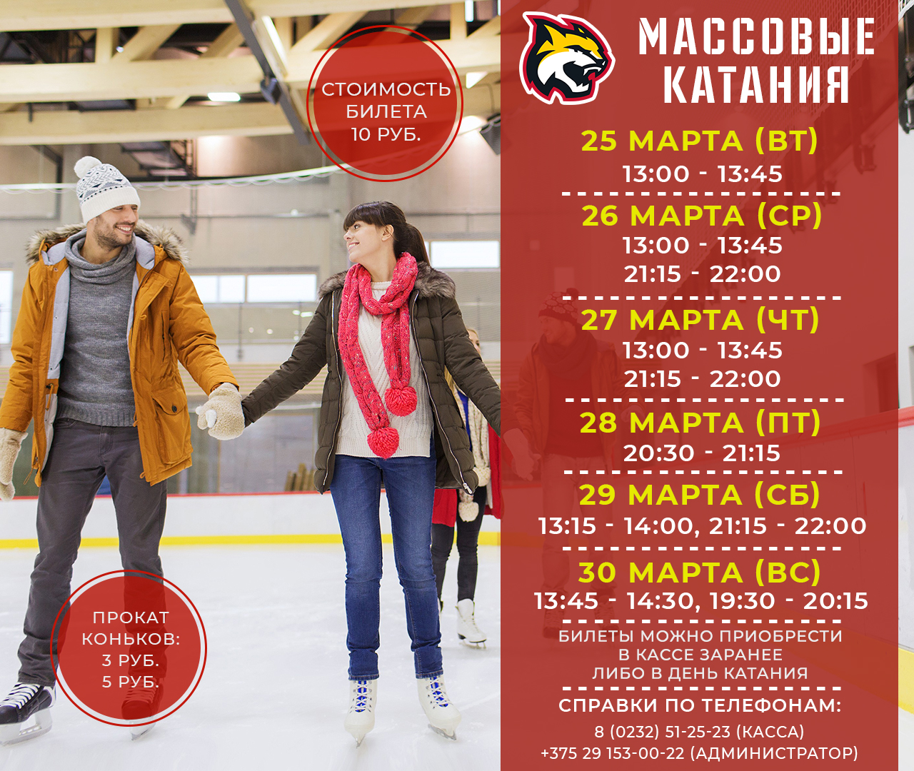 Расписание массовых катаний на 24-30 марта