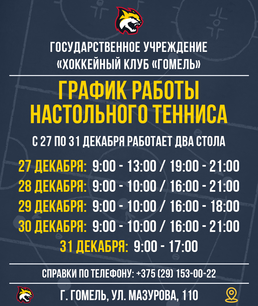 Изменения в режиме работы ледового дворца спорта, касс и настольного тенниса