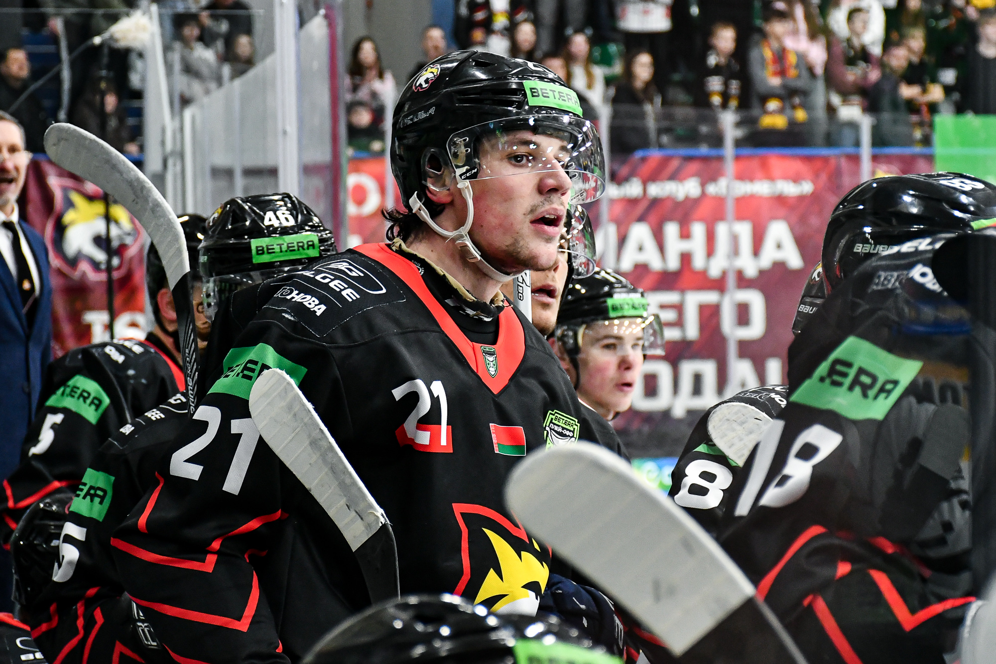 – Хорошая боевая игра. Первый период, считаю, был равный, но мы уступали. Во втором периоде были качели, «Гомель» забил хорошие голы, но потом наши ребята собрались, нашли в себе мужество, проявили характер, сравняли счет, забили хороший гол в большинстве и довели дело до победы.