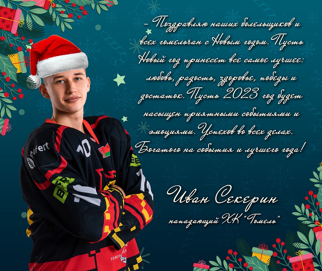 Желаю вам и вашим семьям крепкого здоровья, это самое главное. Оставайтесь добрыми в любой ситуации, чтобы наступающий год принес вам только радость. Заберите все хорошее из 2022 года и оставьте в нем все плохое. Пускай Новый год подарит много улыбок и радости вам и вашим семьям. А болельщикам хоккейного клуба «Гомель» хочу пожелать терпения, верьте в свою любимую команду, переживайте, приходите на трибуны, мы всегда будем стараться радовать вас, чтобы ни один болельщик не остался равнодушным!