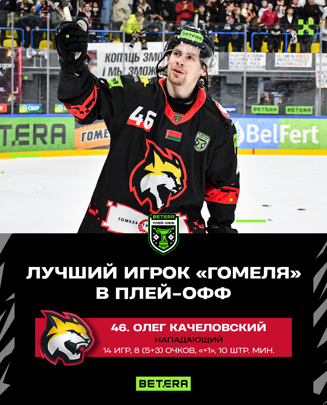 В нашей группе ВКонтакте завершился опрос среди болельщиков по выбору лучшего игрока «Гомеля» в плей-офф. Голосование было невероятно плотным, сразу два хоккеиста набрали практически равное количество ваших голосов (по 43%), поэтому мы решили признать лучшими их обоих, вратарь Максим Лубский и нападающий Олег Качеловский – лучшие игроки нашей команды в плей-офф, поздравляем парней!