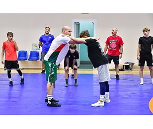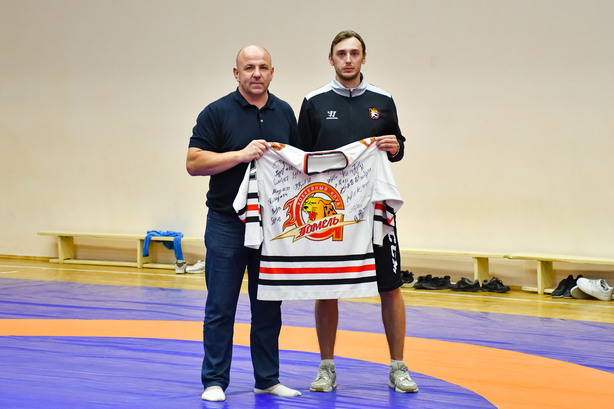 В Гомеле в совместной тренировке встретились представители хоккея с шайбой и греко-римской борьбы
