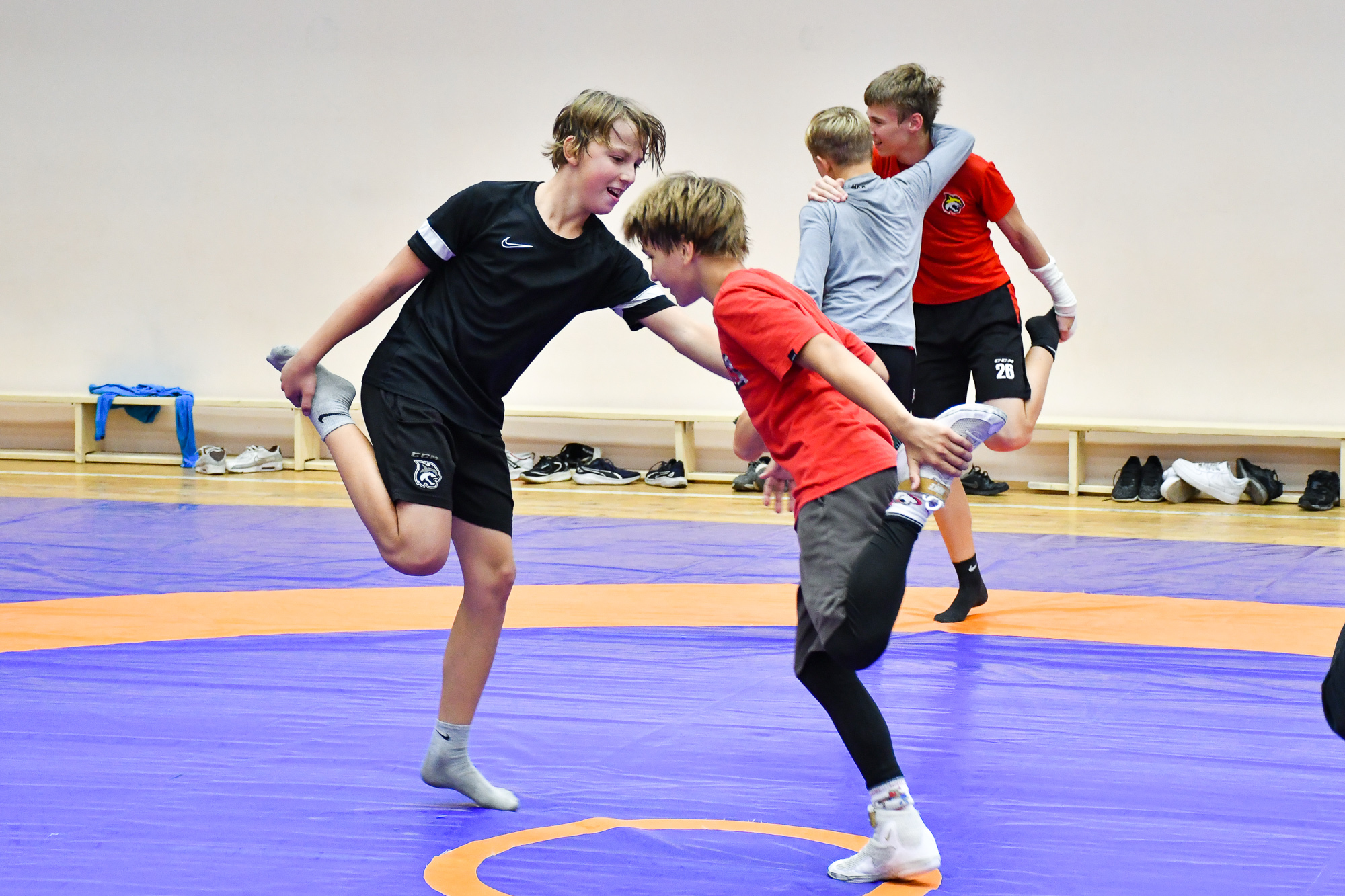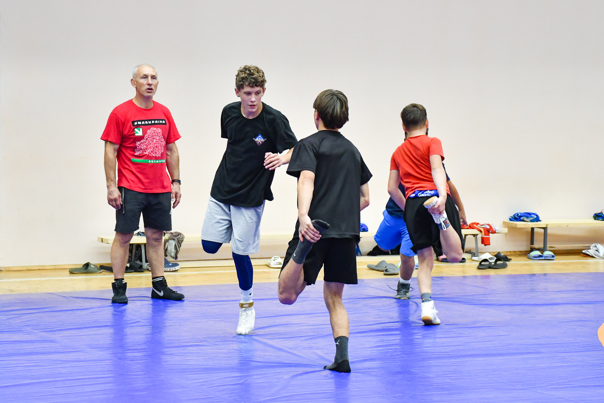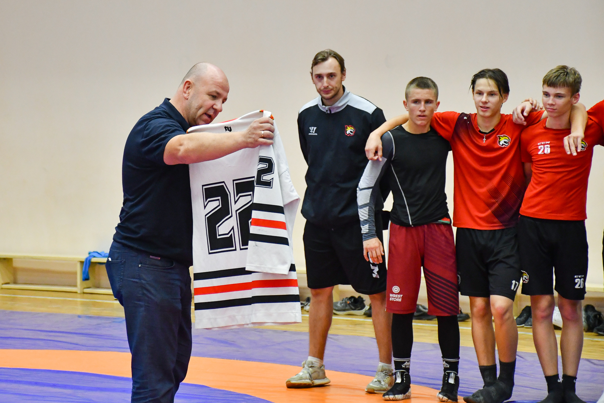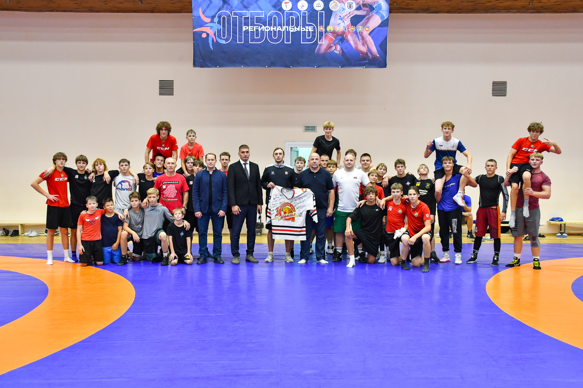 Вчера вечером воспитанники СДЮШОР ХК «Гомель» отправились в спортивный зал СДЮШОР №5 на улице Привокзальной, где их ждала совместная тренировка с ребятами-борцами. В ходе тренировки парни провели активную разминку, после чего, разбившись на пары хоккеист-борец, приступили к выполнению различных упражнений с элементами греко-римской борьбы. В конце мероприятия со всеми его участниками пообщался председатель Гомельской областной Федерации борьбы Штермер Вячеслав Анатольевич, который вручил нашим юным хоккеистам подарок на память – джерси хоккейного клуба «Гомель» с автографами игроков чемпионского состава 2003 года.