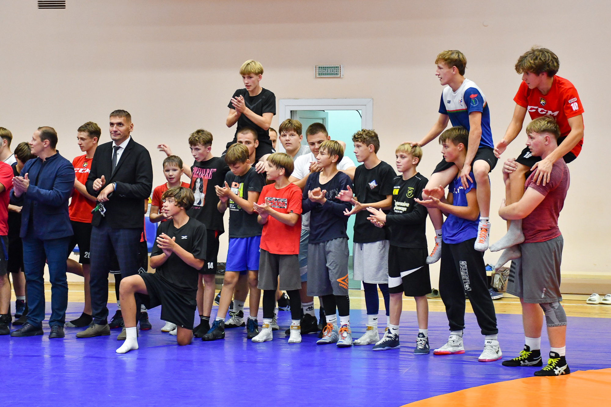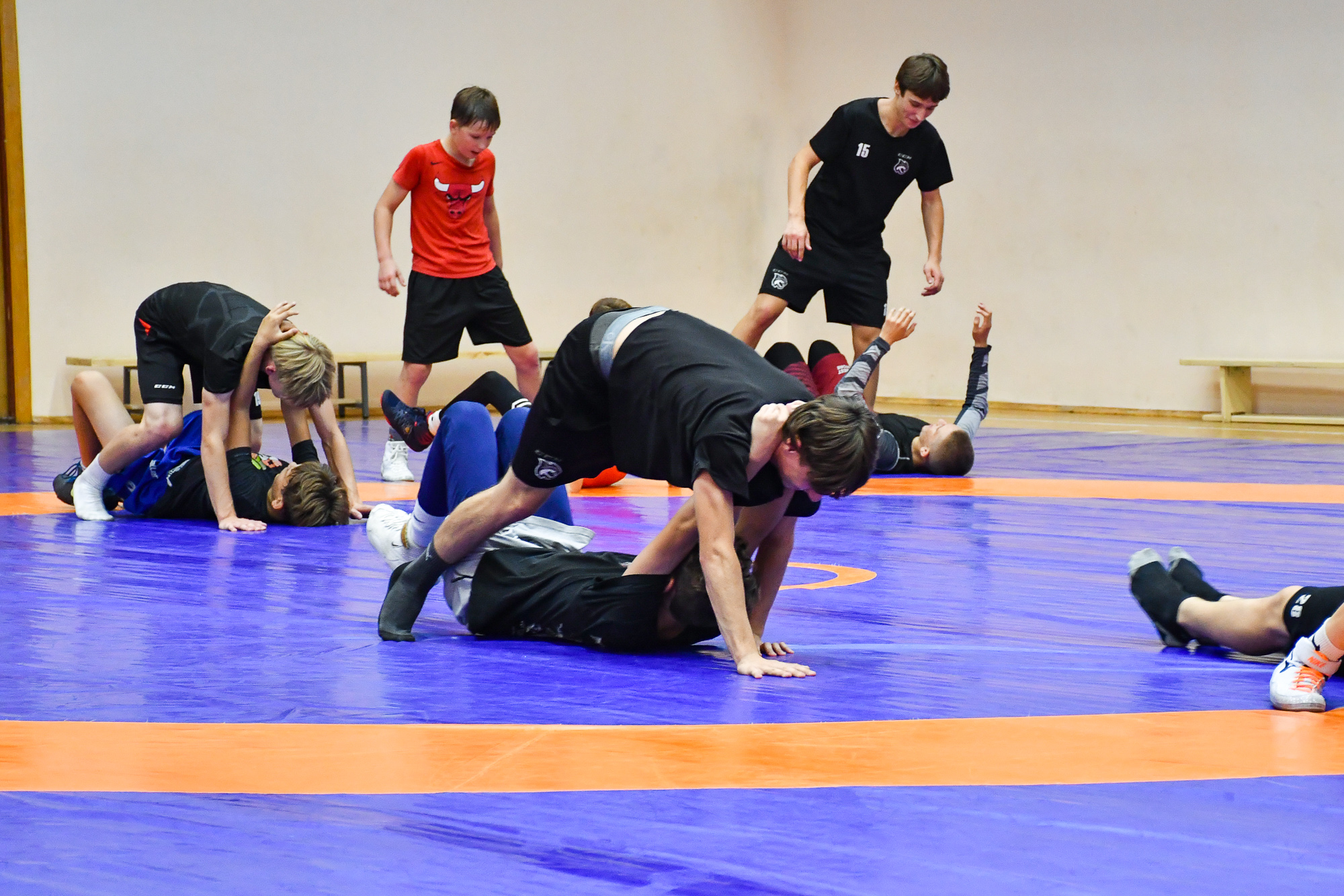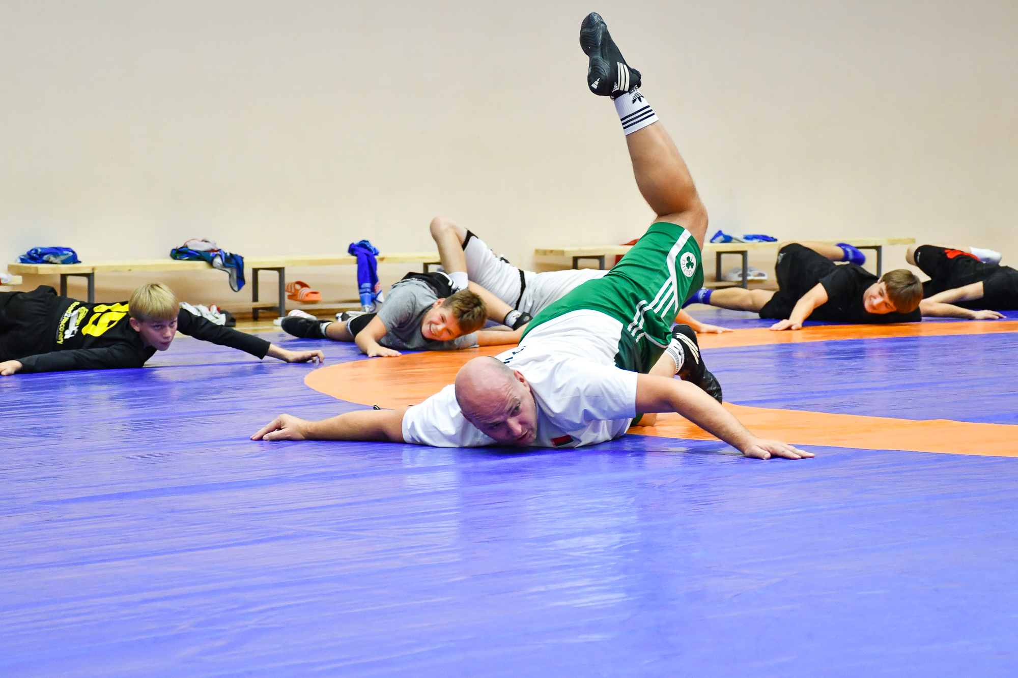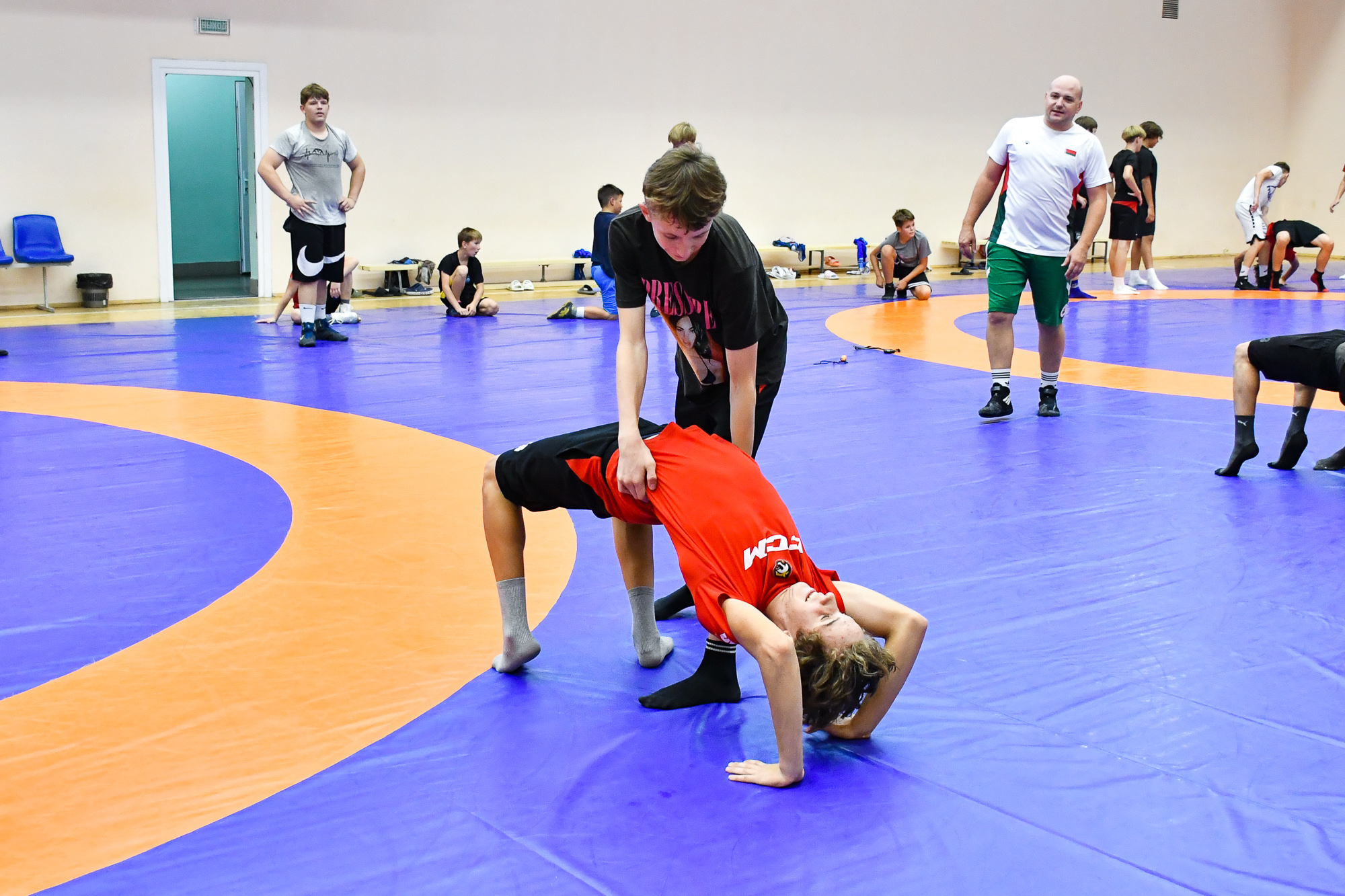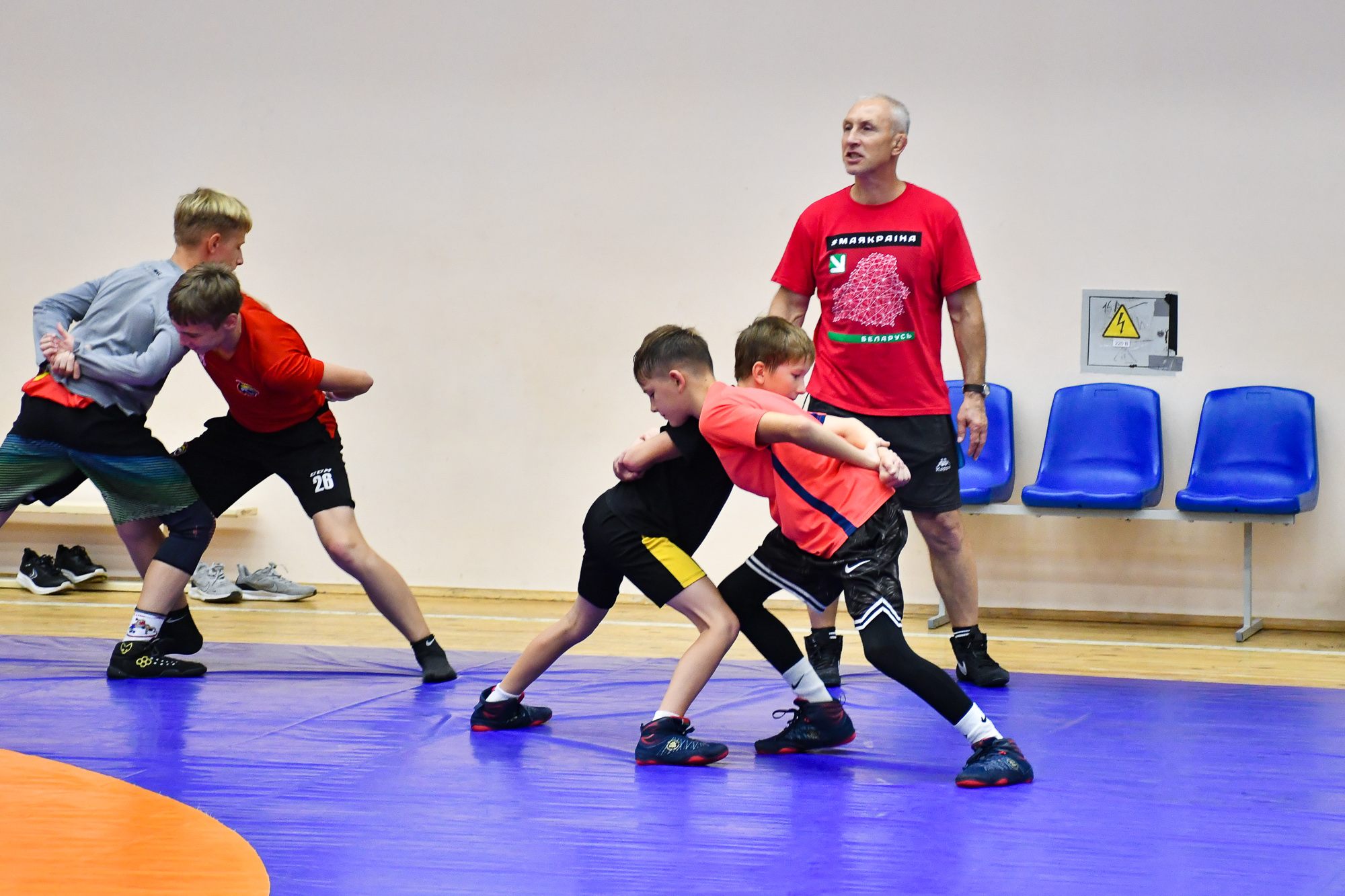 Вчера вечером воспитанники СДЮШОР ХК «Гомель» отправились в спортивный зал СДЮШОР №5 на улице Привокзальной, где их ждала совместная тренировка с ребятами-борцами. В ходе тренировки парни провели активную разминку, после чего, разбившись на пары хоккеист-борец, приступили к выполнению различных упражнений с элементами греко-римской борьбы. В конце мероприятия со всеми его участниками пообщался председатель Гомельской областной Федерации борьбы Штермер Вячеслав Анатольевич, который вручил нашим юным хоккеистам подарок на память – джерси хоккейного клуба «Гомель» с автографами игроков чемпионского состава 2003 года.