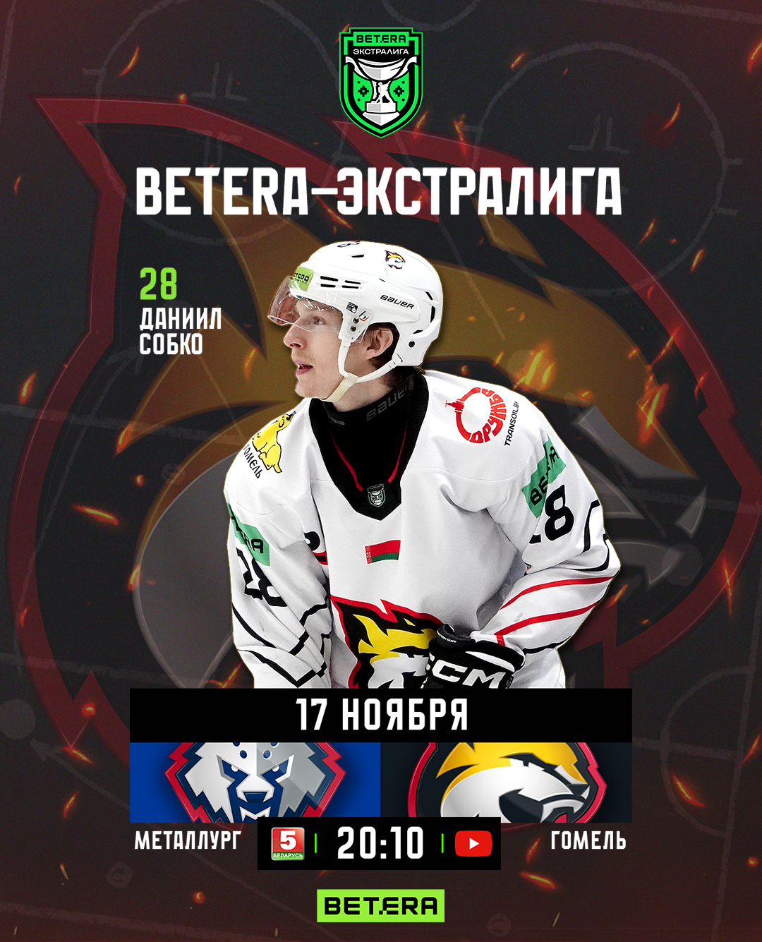 Матч начнется в 20:10 в связи с прямым эфиром на телеканале «Беларусь 5», также смотрите трансляцию на YouTube-канале «Хоккей Беларуси | Экстралига».