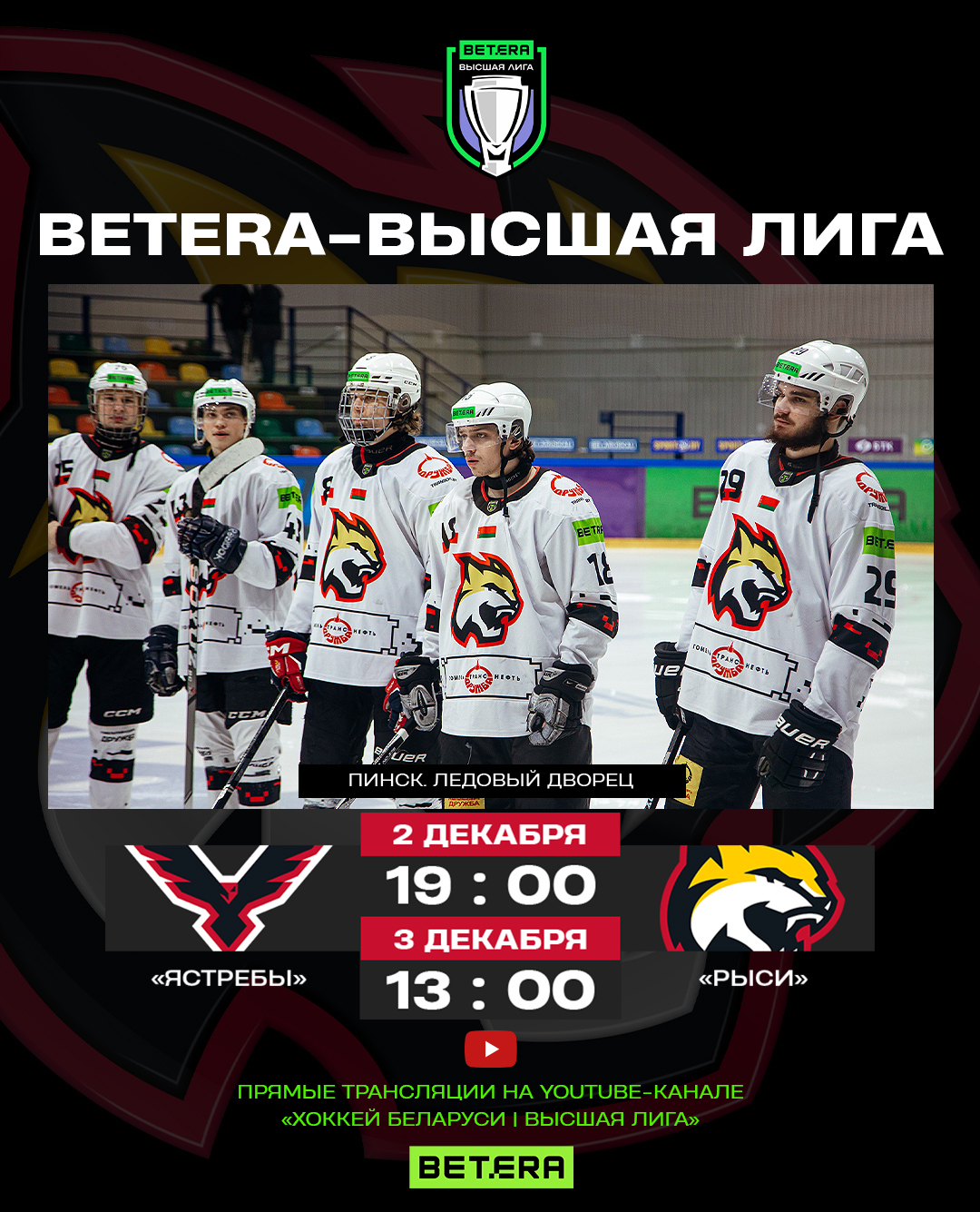 Betera-Высшая лига: 2 и 3 декабря «Рыси» сыграют в гостях у «Ястребов»
