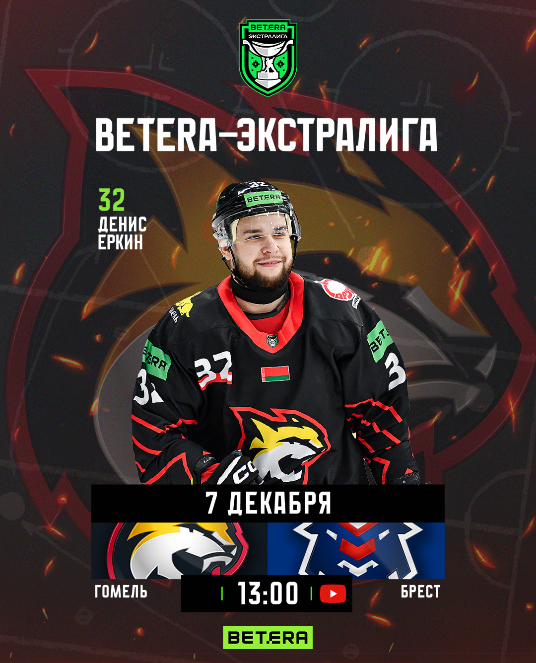 Матч начнется в 13:00, прямая трансляция – на YouTube-канале «Хоккей Беларуси | Экстралига».