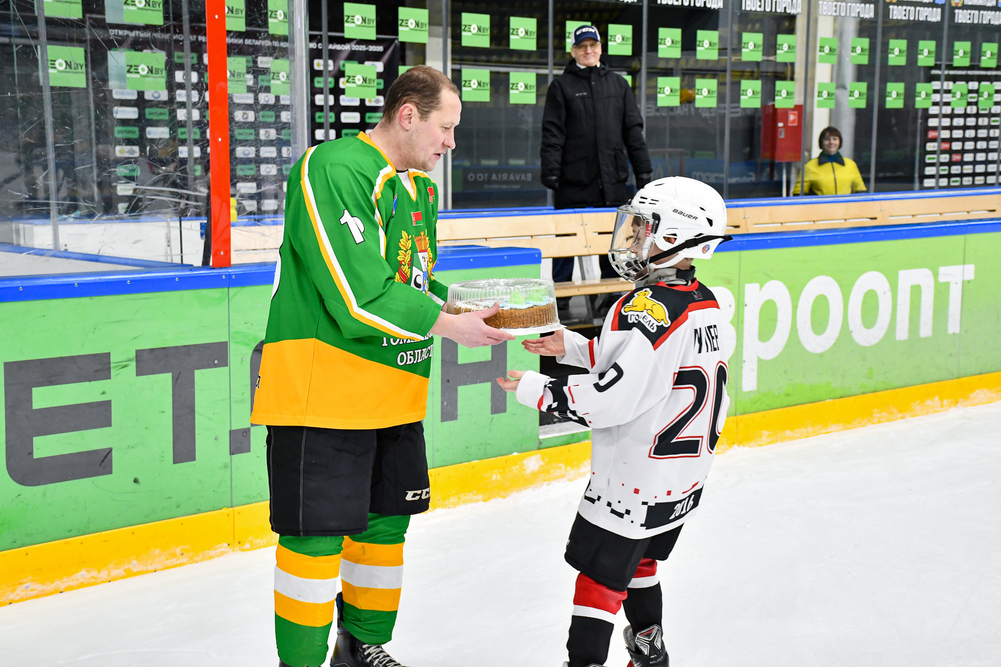 Игра стартовала после небольшой разминки и проходила в формате три периода по 15 минут, а в перерывах ребята могли посоревноваться со своими тренерами в различных конкурсах – от эстафет на скорость до бросков через всю площадку на точность. Весь матч обе команды шли ноздря в ноздрю, счет на табло склонялся то в одну, то в другую сторону, однако по итогу поединок завершился с ничейным счетом – 10:10, а вот в серии послематчевых бросков сильнее оказались наши юные спортсмены.