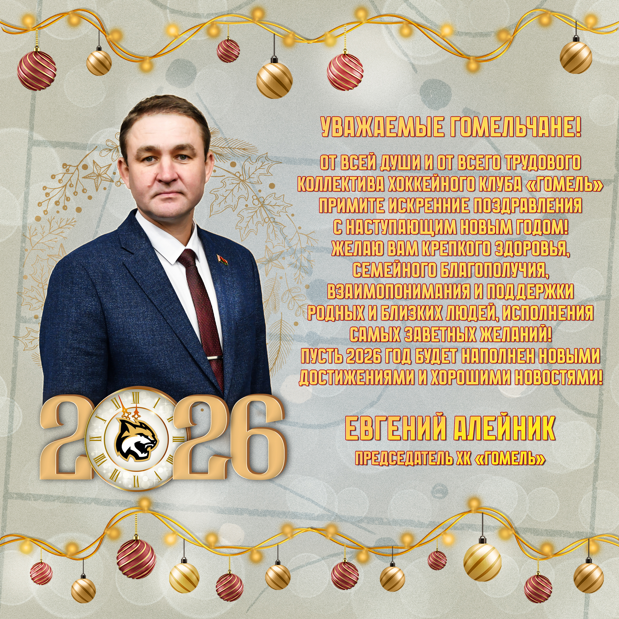 Поздравление с Новым годом от председателя хоккейного клуба «Гомель» Евгения Алейника