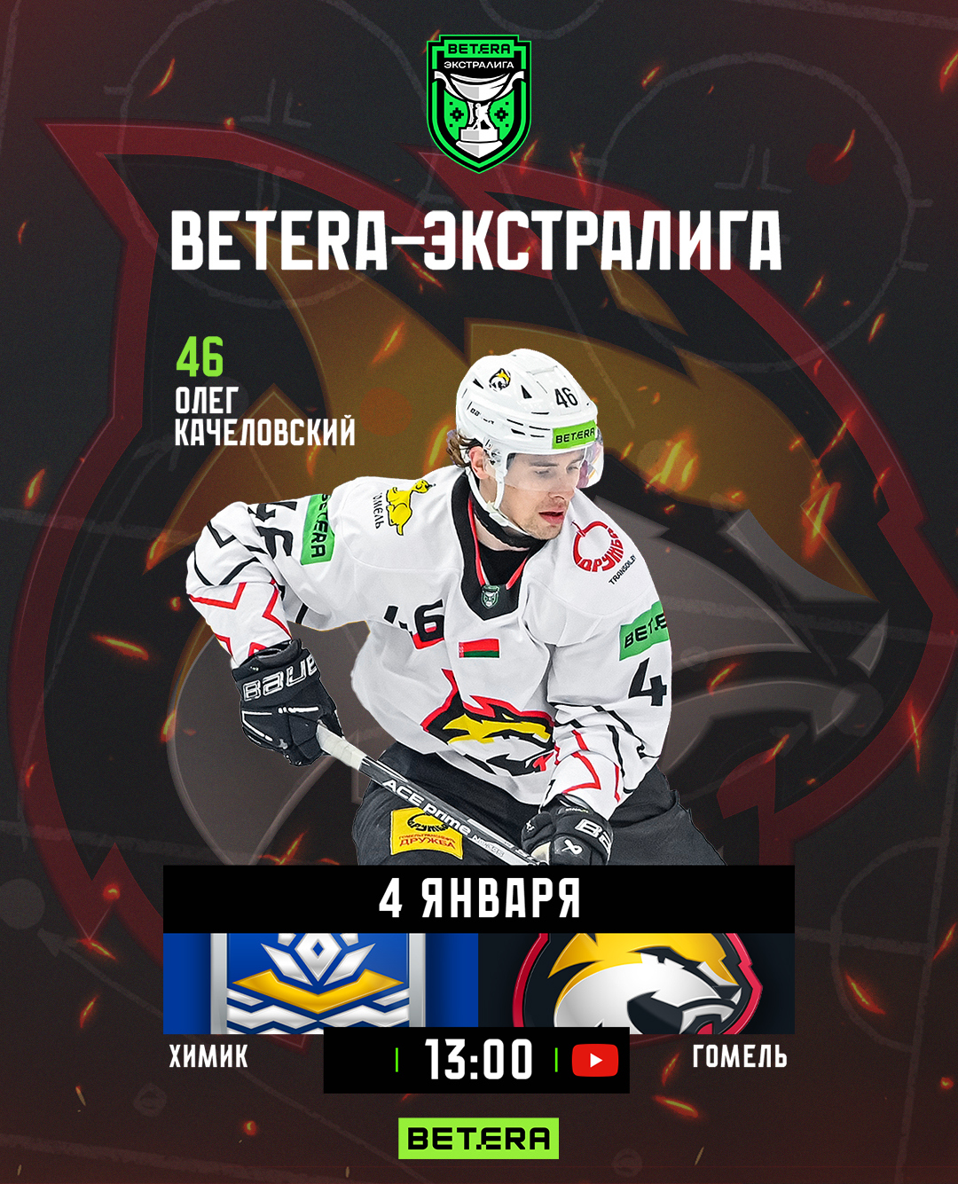 Игра начнется в 13:00, прямую трансляцию смотрите на YouTube-канале «Хоккей Беларуси | Экстралига».