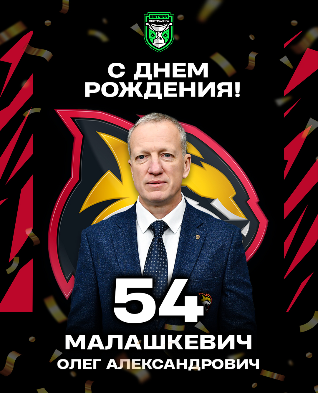 Сегодня свое 54-летие празднует тренер команды экстралиги хоккейного клуба «Гомель» Малашкевич Олег Александрович!
