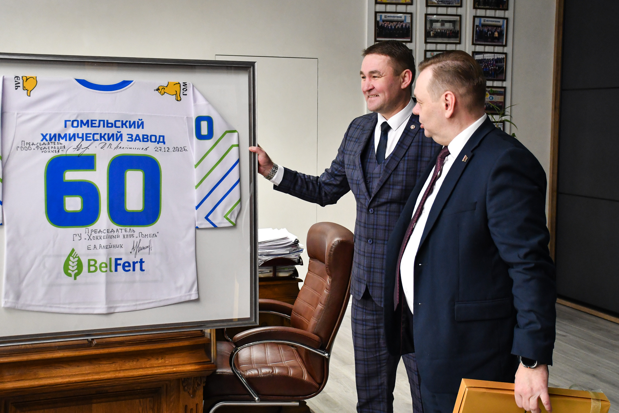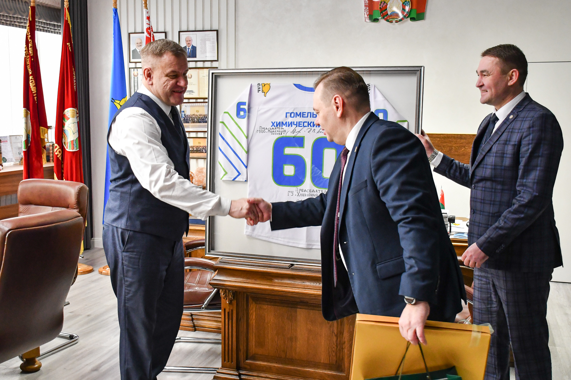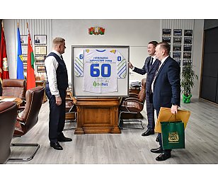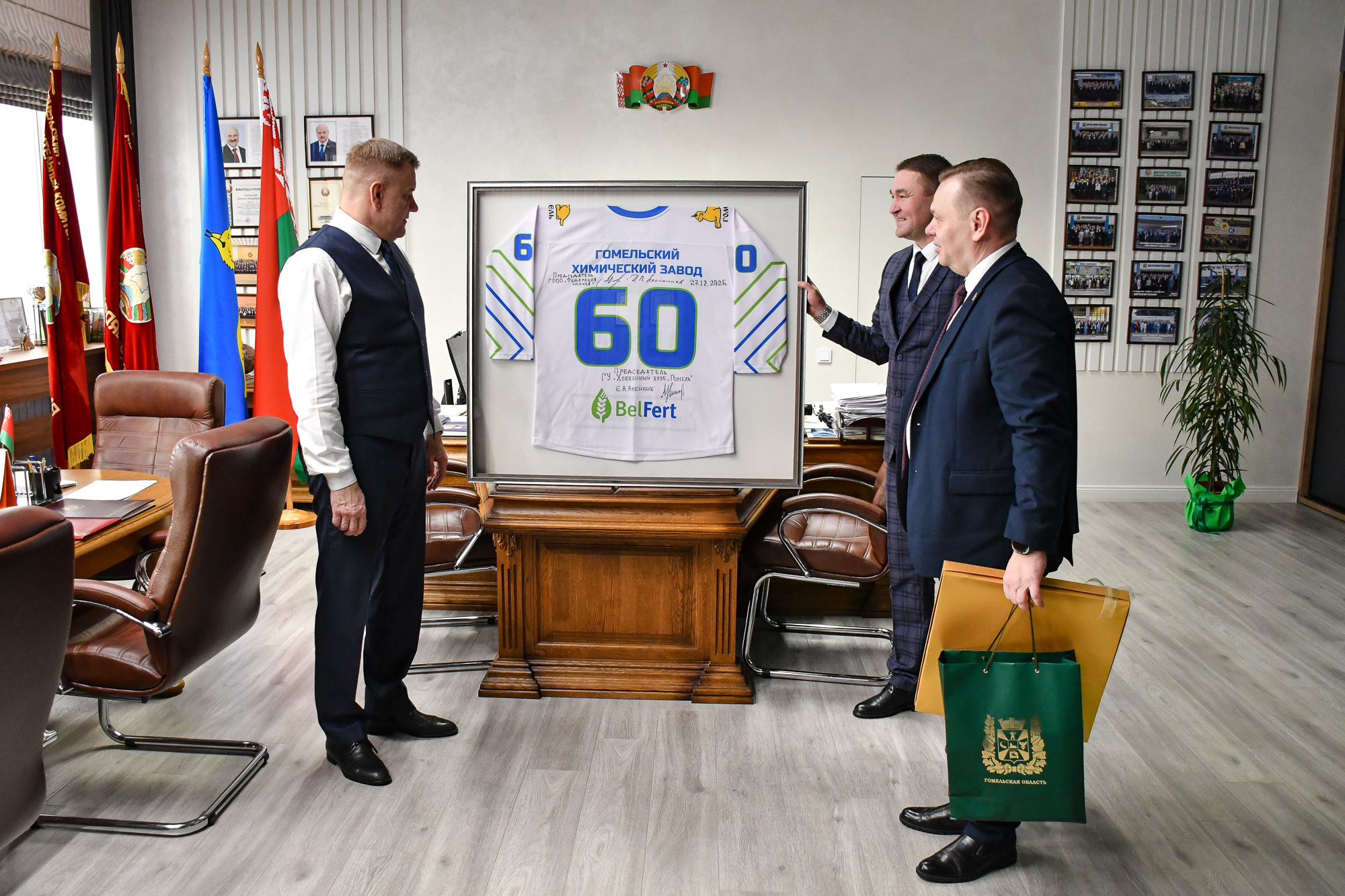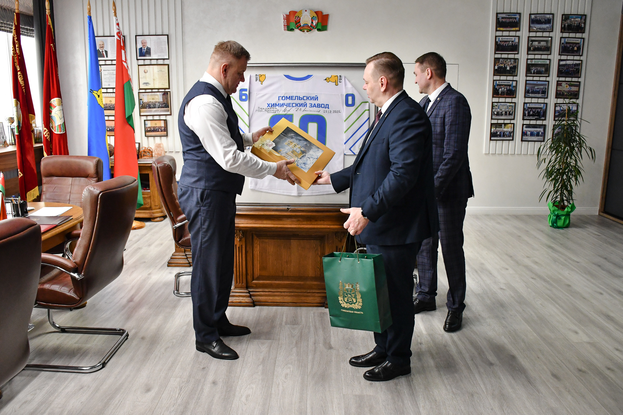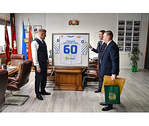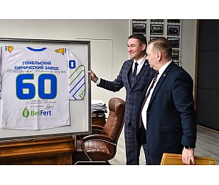Руководители ГООО «Федерация хоккея» и хоккейного клуба «Гомель» поздравили Гомельский химзавод с 60-летием