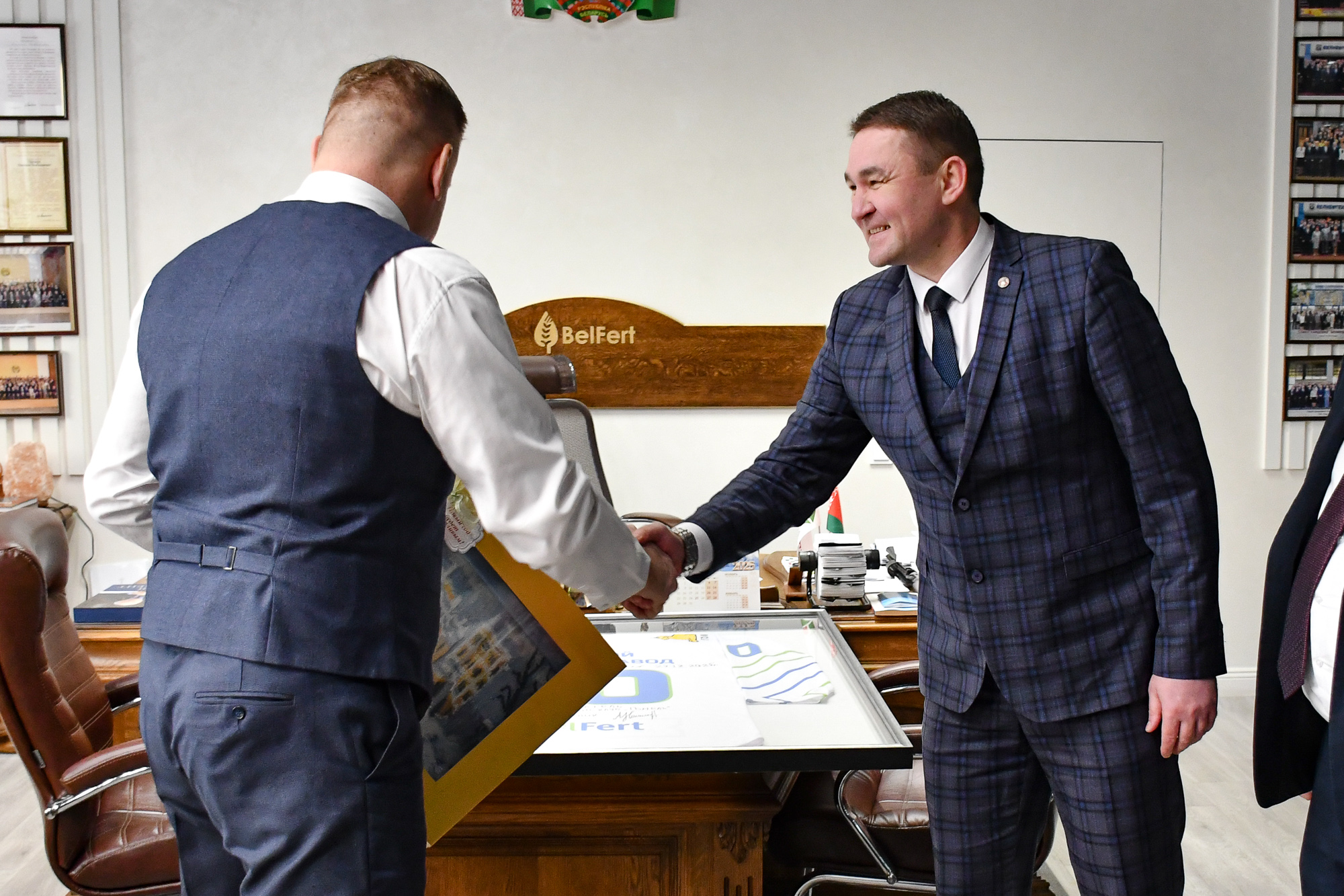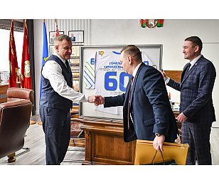 Совсем недавно Гомельский химзавод отпраздновал свой 60-летний юбилей, Дмитрий Вадимович и Евгений Александрович поздравили директора предприятия Чернякова Дмитрия Владимировича и весь коллектив со знаменательной датой, вручили памятные подарки, которые будут представлены в музее завода, и пожелали предприятию процветания, благополучия и уверенности в завтрашнем дне.