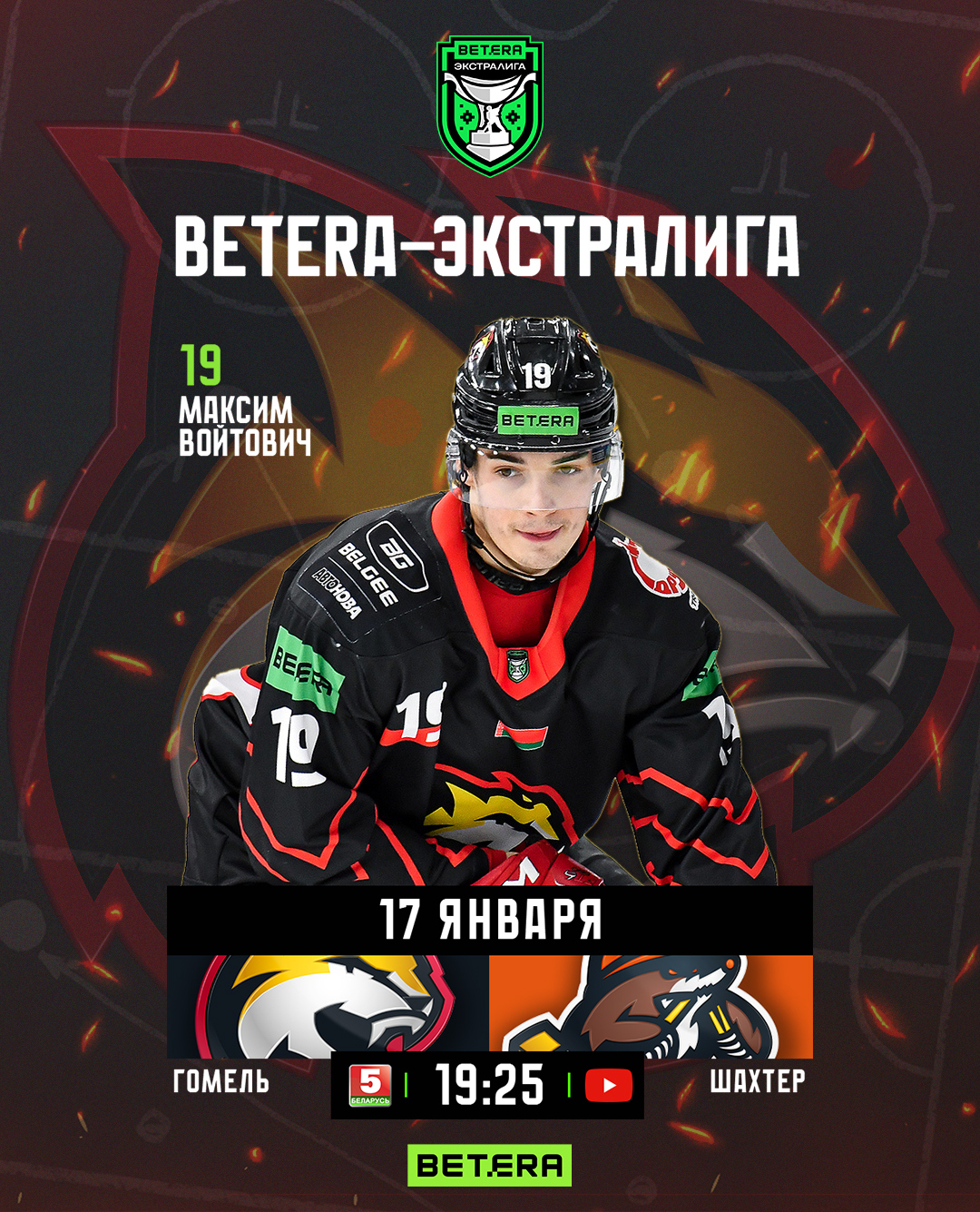 Матч начнется в 19:25 в связи с прямым эфиром на телеканале «Беларусь 5», также трансляцию смотрите на YouTube-канале «Хоккей Беларуси | Экстралига».