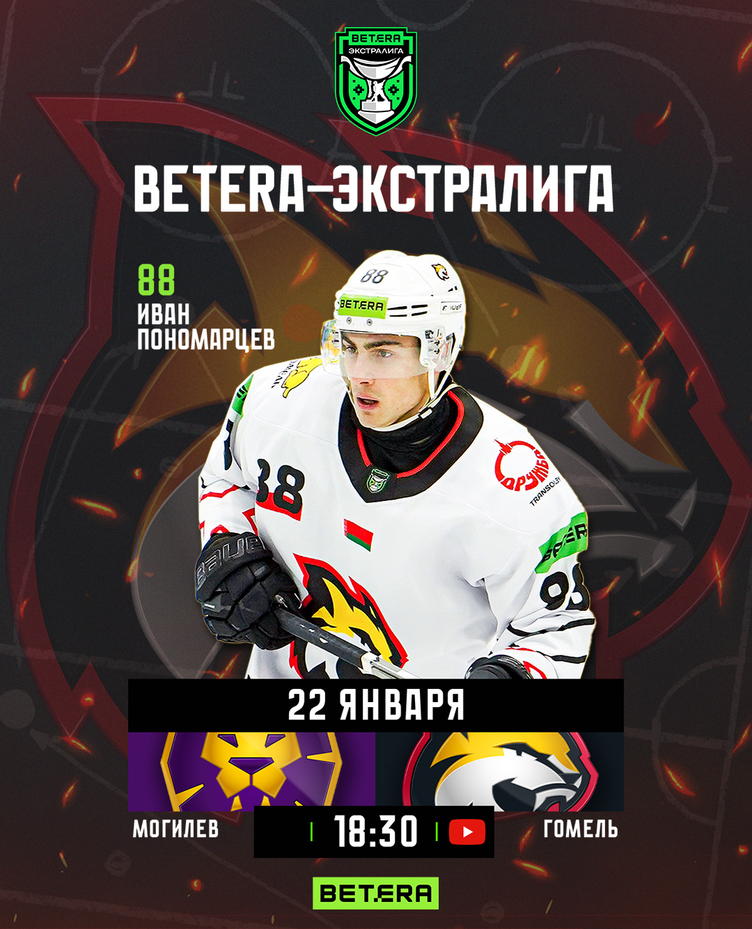 Betera-Экстралига: 22 января «Гомель» сыграет в гостях у «Могилева», начало матча - в 18:30