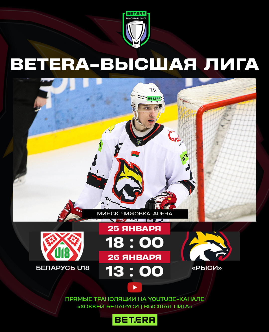 Betera-Высшая лига: 25 и 26 января «Рыси» сыграют в гостях у юниорской сборной Беларуси