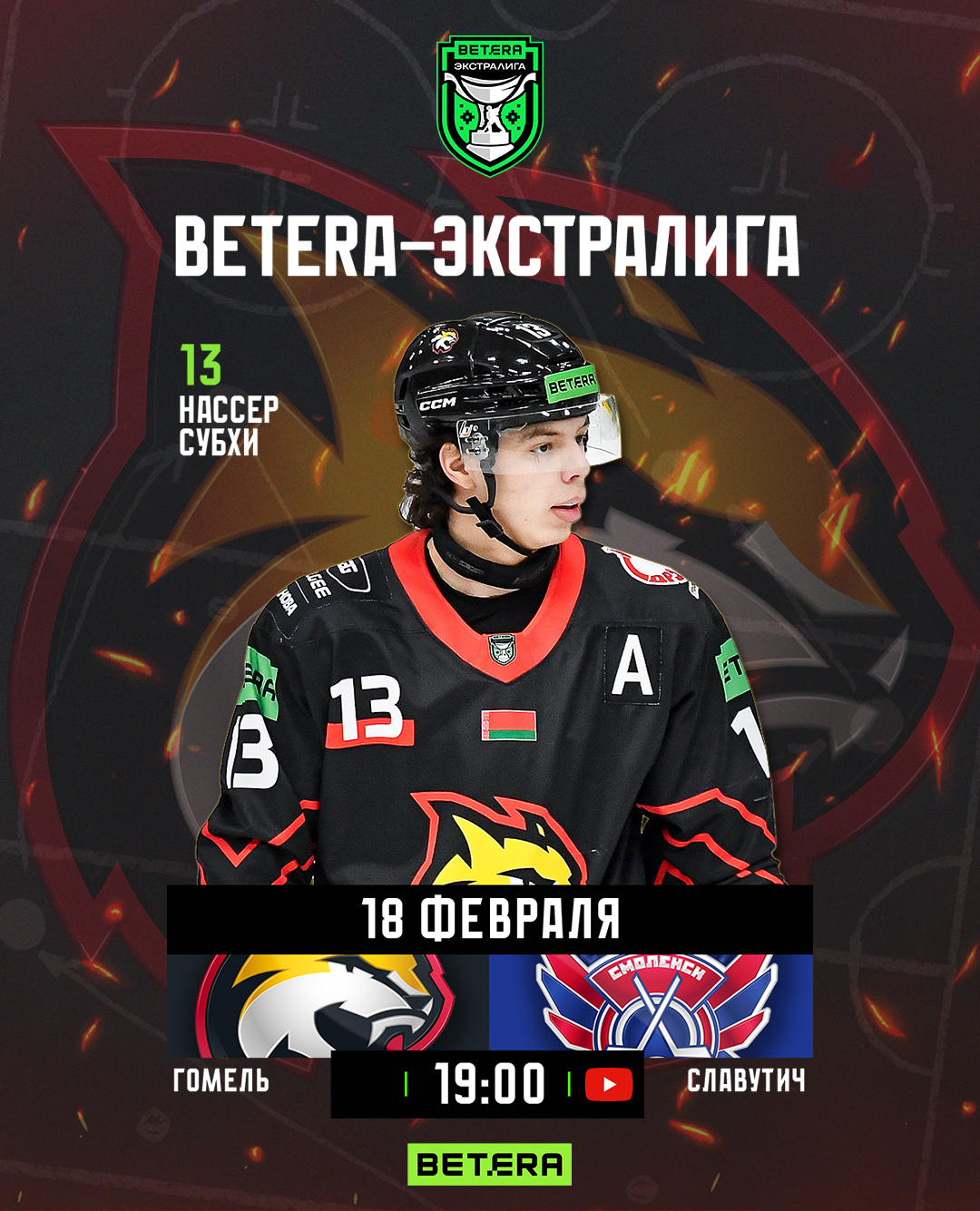 Игра начнется в 19:00, прямую трансляцию смотрите на YouTube-канале «Хоккей Беларуси | Экстралига».