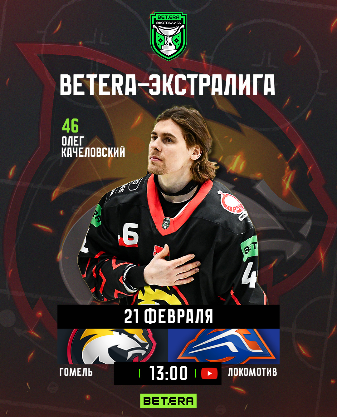 Встреча начнется в 13:00, прямую трансляцию смотрите на YouTube-канале «Хоккей Беларуси | Экстралига».