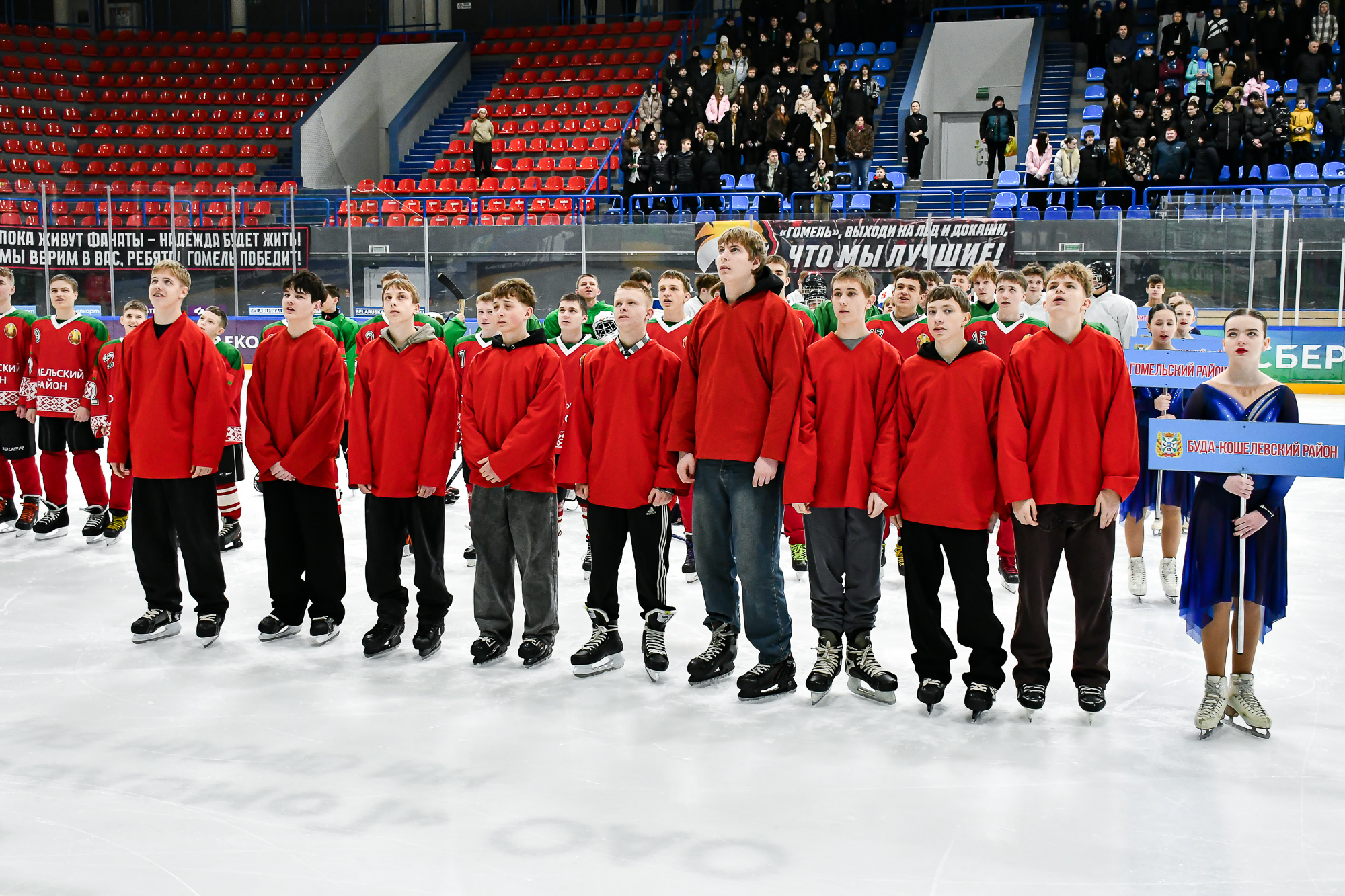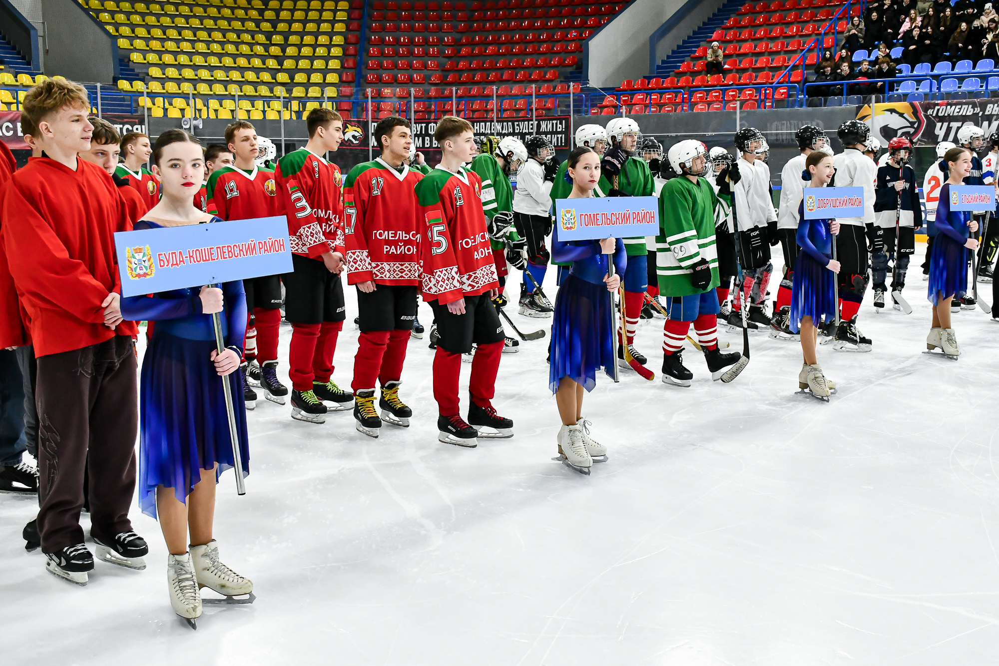 Сегодня в гомельском Ледовом дворце состоялось торжественное открытие областных соревнований по хоккею «Золотая шайба» в дивизионе Б в старшей возрастной группе. В соревнованиях принимают участие ребята 2010-2011 годов рождения. В дивизионе Б участвуют команды районов, городов, где нет физкультурно-спортивных сооружений с искусственным льдом. В нашем городе на этом этапе встретятся 12 команд, представляющих разные районы Гомельской области – от Буда-Кошелевского до Чечерского.