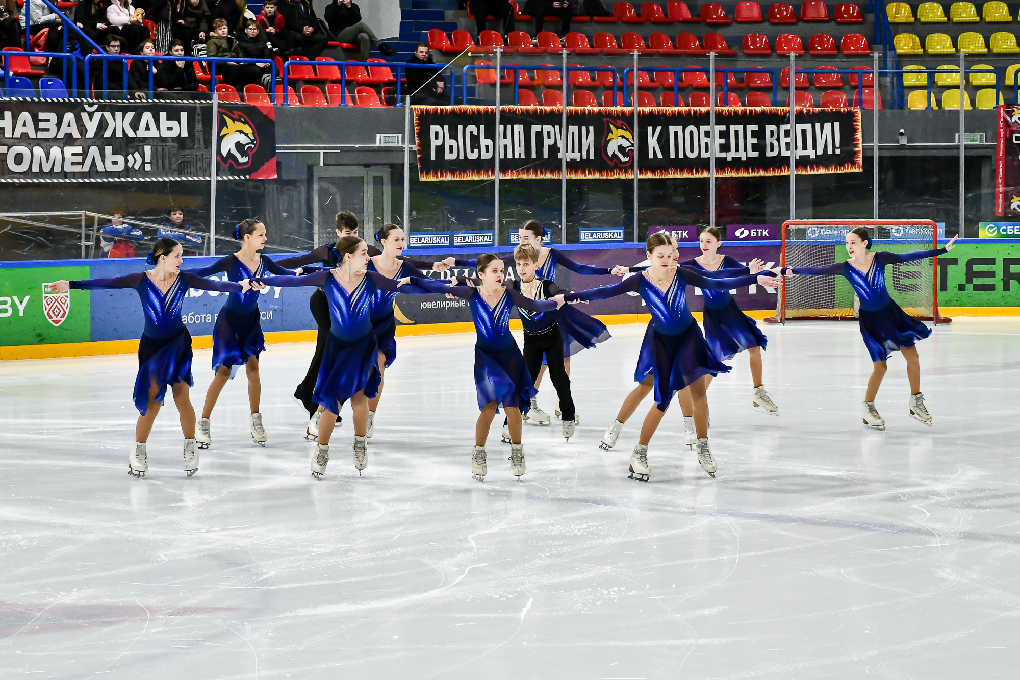 Перед началом соревнований с напутственным словом к участникам и болельщикам обратился заместитель начальника управления спорта Гомельского облисполкома Полуян Игорь Леонидович, а команда синхронного катания СДЮШОР ХК «Гомель» представила свою программу.