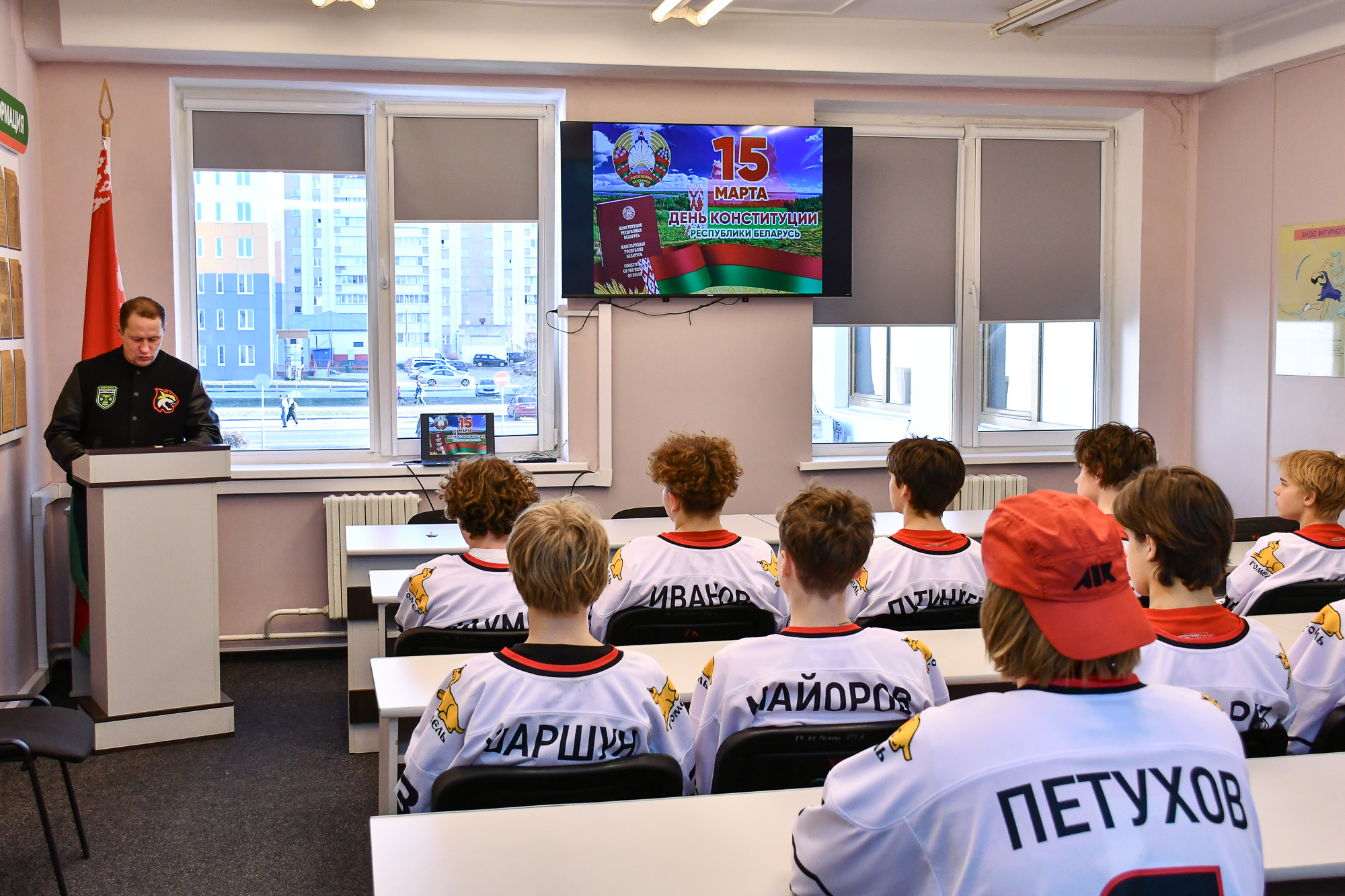 В канун этого дня администрация и профсоюзный комитет хоккейного клуба «Гомель» провели познавательную беседу с воспитанниками нашей СДЮШОР на тему «Конституция Республики Беларусь – Основной Закон государства».