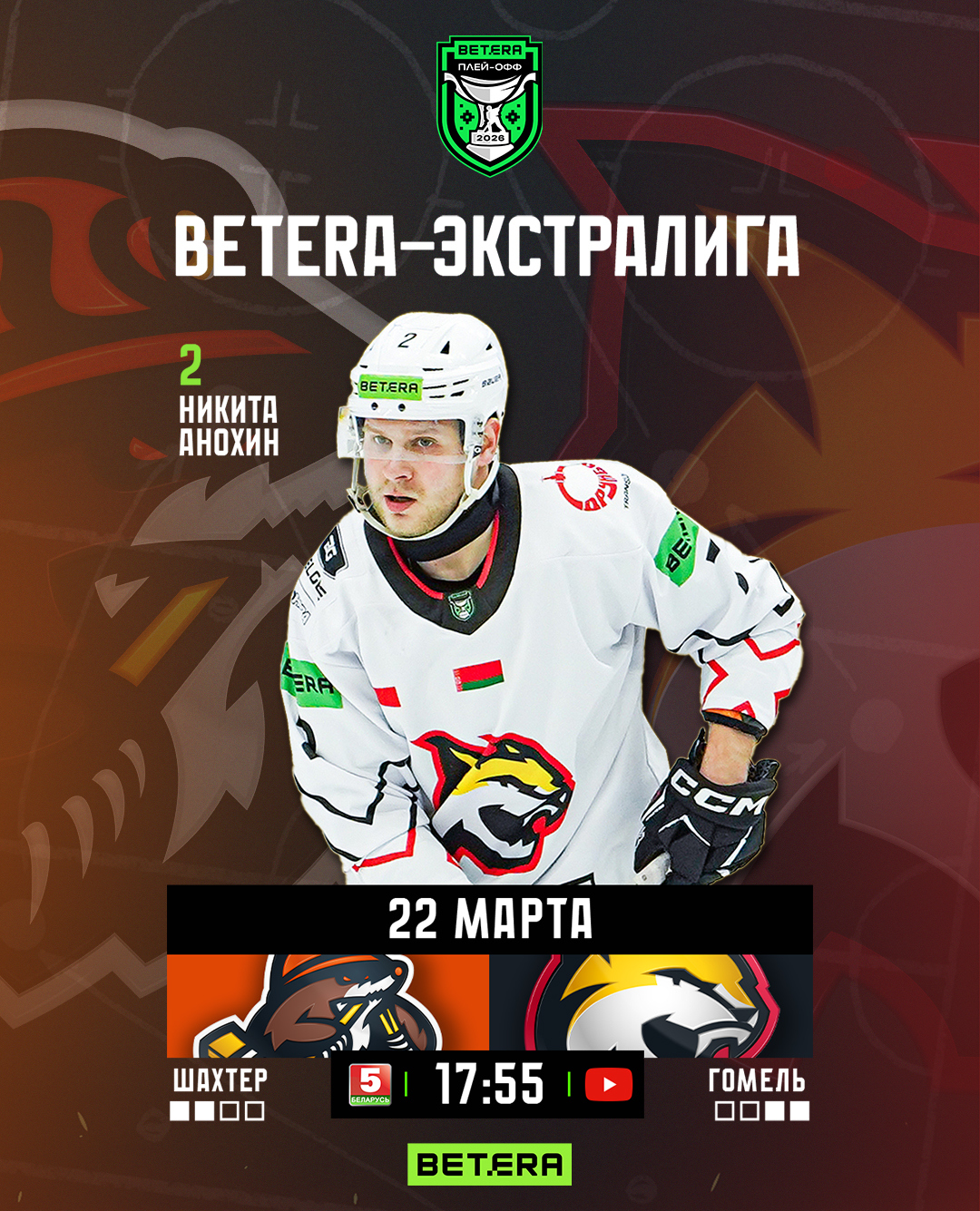Игра начнется в 17:55, прямую трансляцию смотрите на телеканале «Беларусь 5» и YouTube-канале «Хоккей Беларуси | Экстралига».