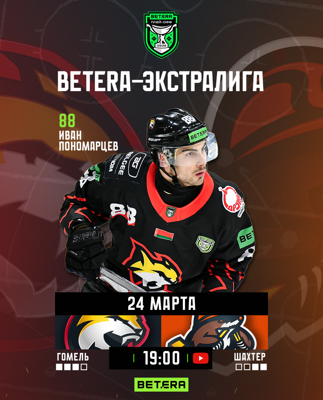 Игра стартует в 19:00, прямую трансляцию смотрите на YouTube-канале «Хоккей Беларуси | Экстралига».
