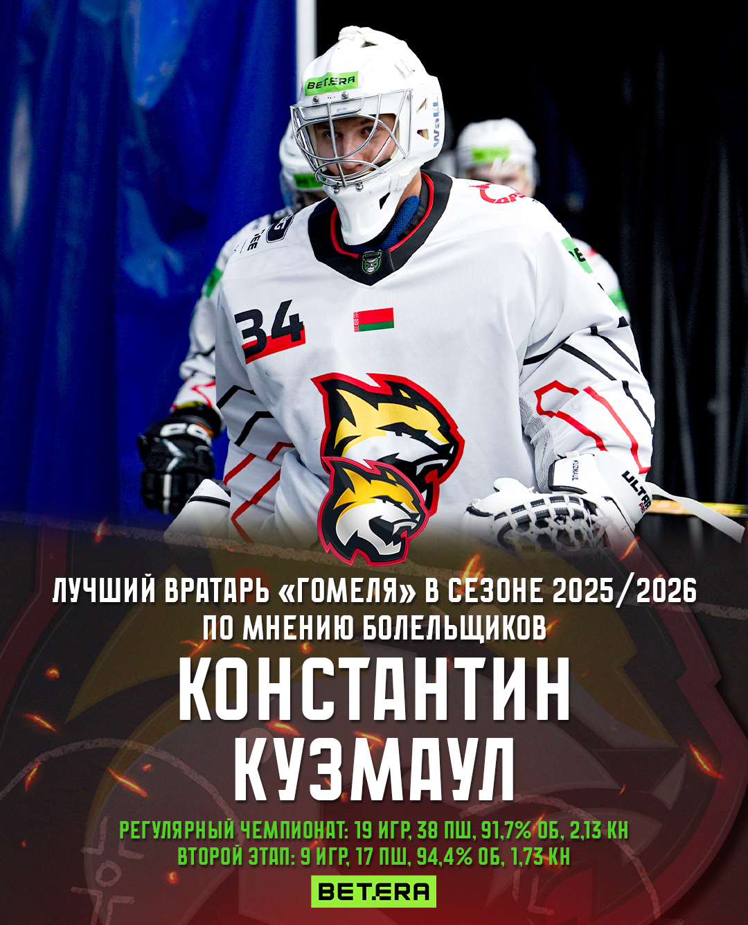 Константин Кузмаул – лучший вратарь «Гомеля» в сезоне 2025/2026 по мнению болельщиков